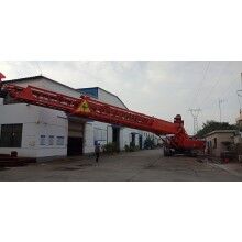 我公司生產(chǎn)的可移動(dòng)式混凝土運(yùn)輸、澆筑設(shè)備——自行帶式混凝土布料機(jī),小時(shí)澆筑強(qiáng)度可達(dá)270m3。為了解決混凝土布料機(jī)的供料問(wèn)題,自行研制了可移動(dòng)式上料平臺(tái)。